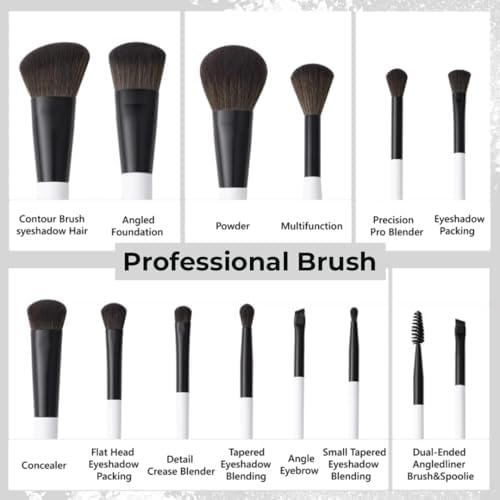 Makeup Brushes Set 12 pcs with Pouch and Silicone Cleaning Pad
