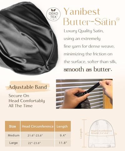 YANIBEST Silk Satin Bonnet Hair Cover Sleep Cap - Adjustable Stay on Silk Lined Slouchy Beanie Hat for Night Sleeping