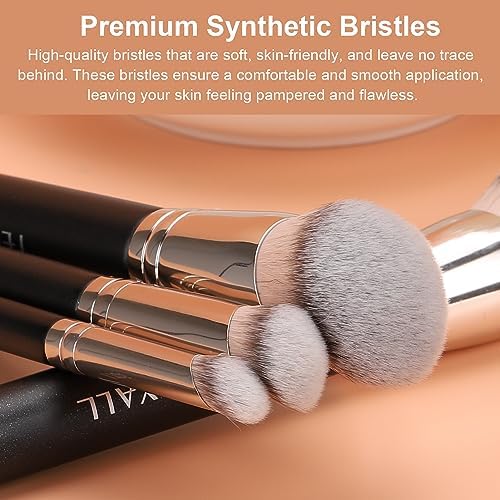 TEOYALL Foundation Contour Conceal Brush Set, 3PCS Angled Synthetic Kabuki Brush for Blending Setting Buffing with Liquid